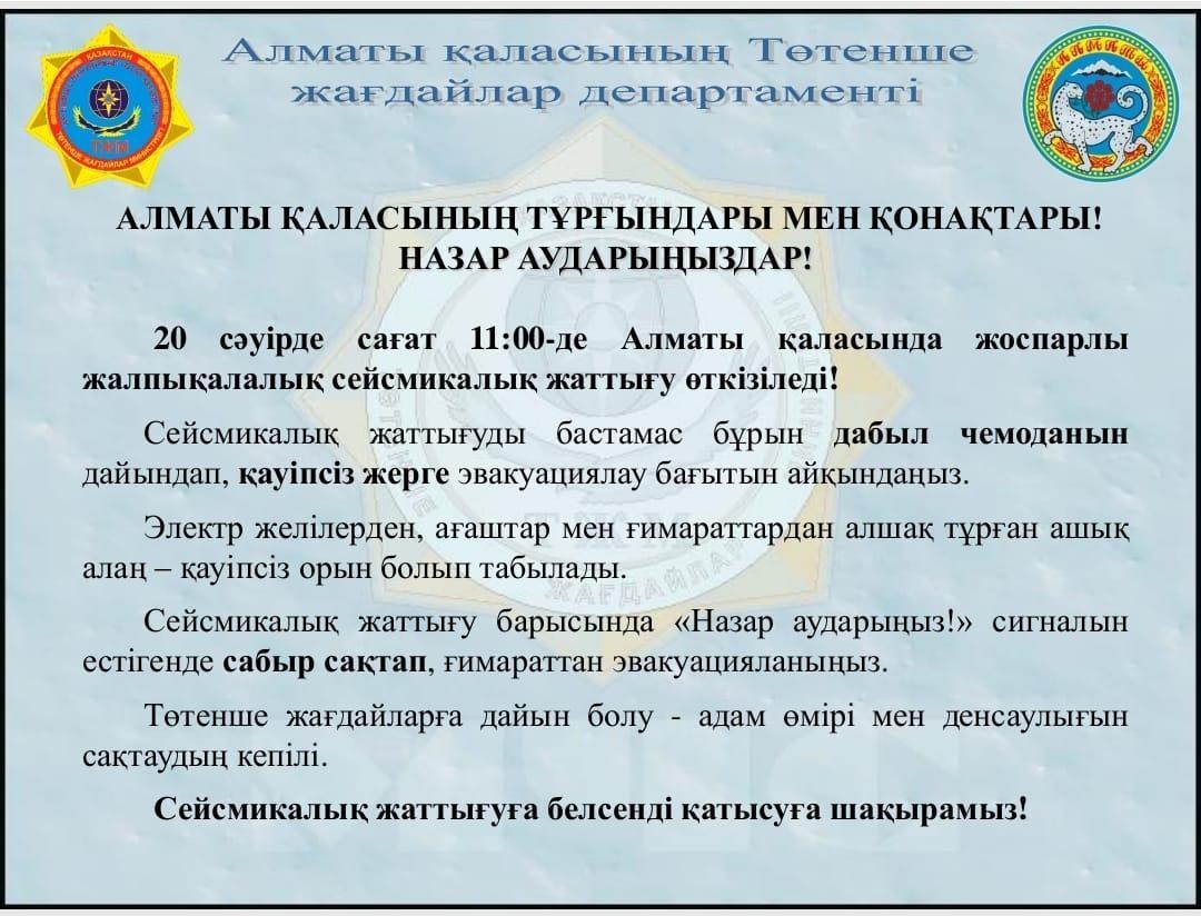 » 20-сәуір сейсмикалық жаттығу