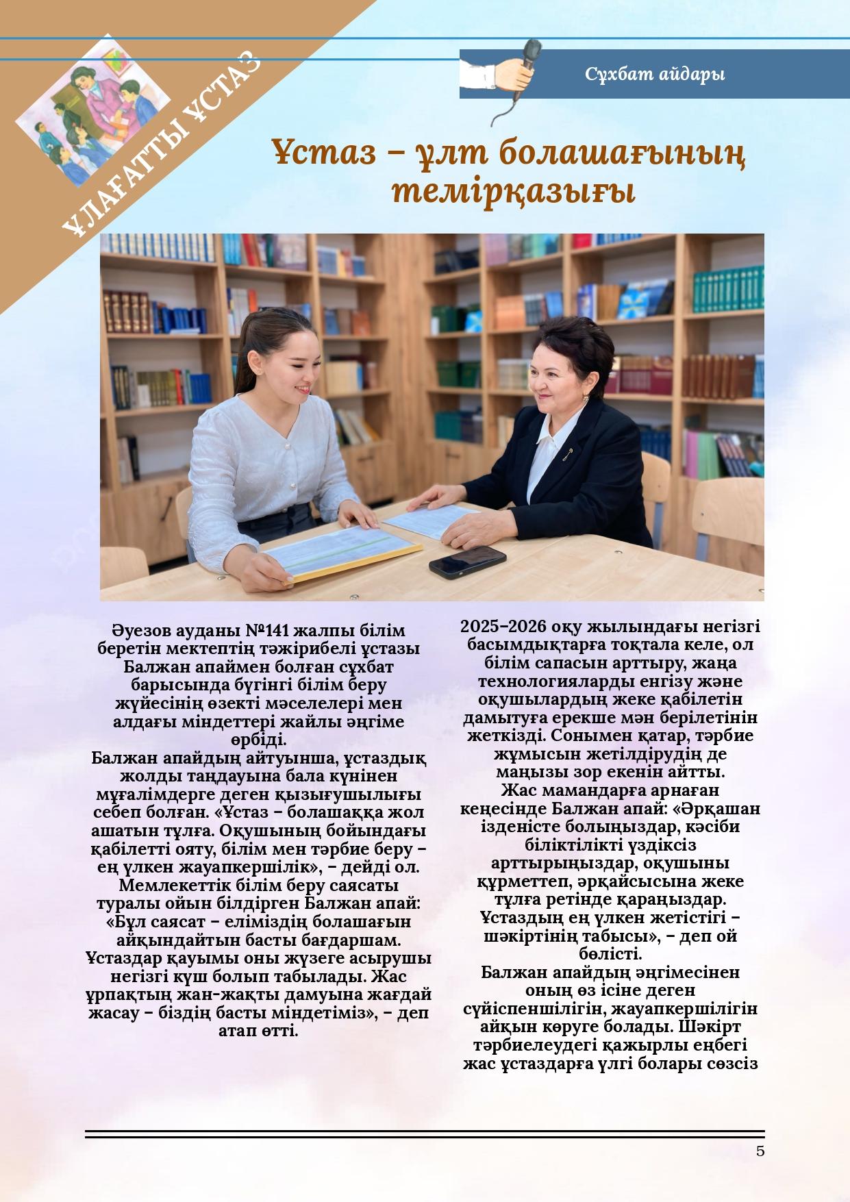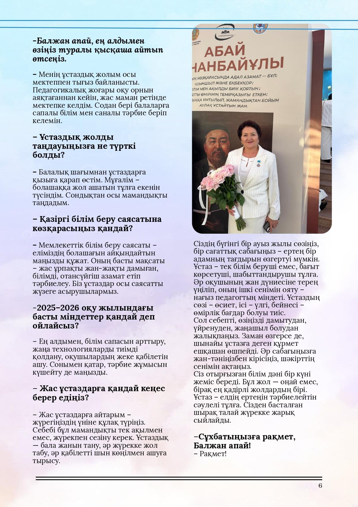 «Білім беру ұйымының 2025–2026 оқу жылындағы білім беру саясаты мен басымдықтары»
