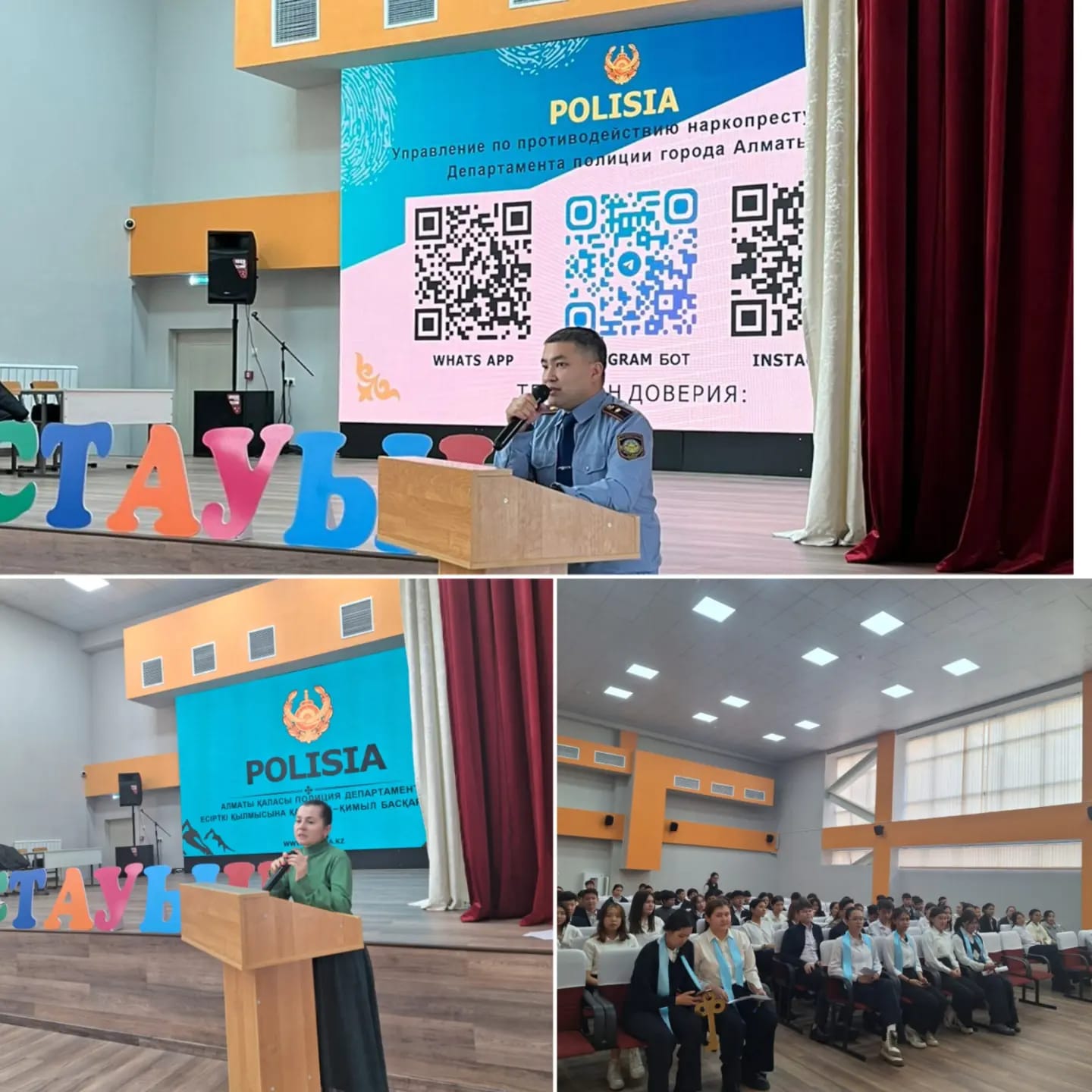 №141 жалпы білім беретін мектепте 24.01.2024 ж күні Алматы қаласы полиция департаменті Есірткі қылмысына қарсы басқармасының аға жедел уәкілі полиция майоры Көбеев Дәурен Асқарұлы және қалалық психикалық сауықтыру орталығының нарколог-дәрігері Трубникова Анна Александровнаның қатысумен 9,10 сынып оқушыларына «Жасөспірімдер арасындағы нашақорлықтың алдын алу» тақырыбында дәріс өткізілді.