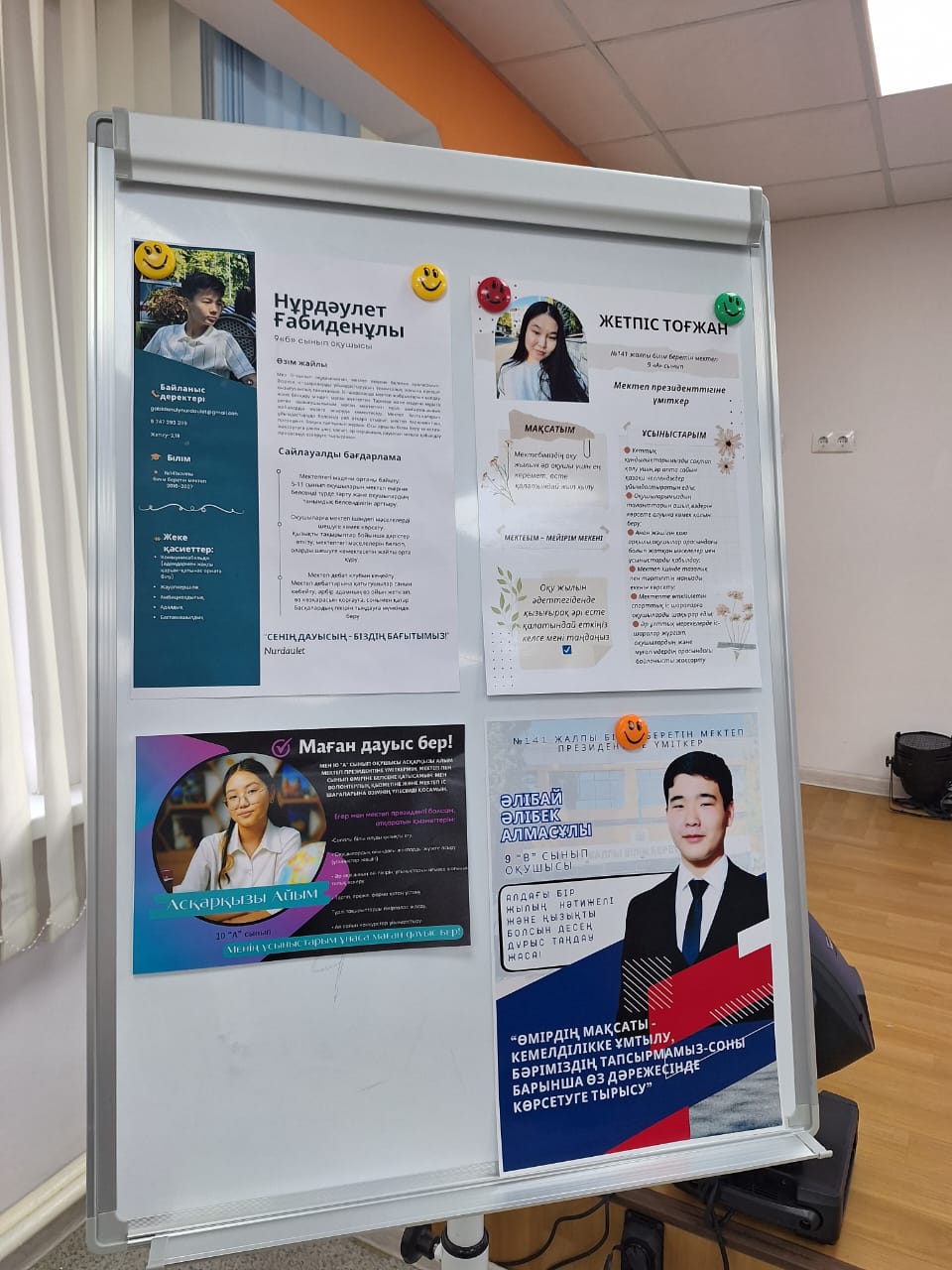 17.10.2024ж күні Алматы қаласы, Әуезов ауданы, №141 жалпы білім беретін мектепте өзін-өзі басқару ұйымының Президенттігіне үміткерлердің сайлауалды бағдарламасының тыңдалымы өтті. Мақсаты: мектептегі өзін-өзі басқару жұмысын жандандыру, оқушылардың басқару құқықтарын жүзеге асыру, ұйымдастырушылық қасиеті бар, шешім қабылдауға қабілетті, жауапты, тәртіпті, өз бетінше таңдау жасауға дайын, белсенді өмірлік ұстанымға ие тұлғаны тәрбиелеу