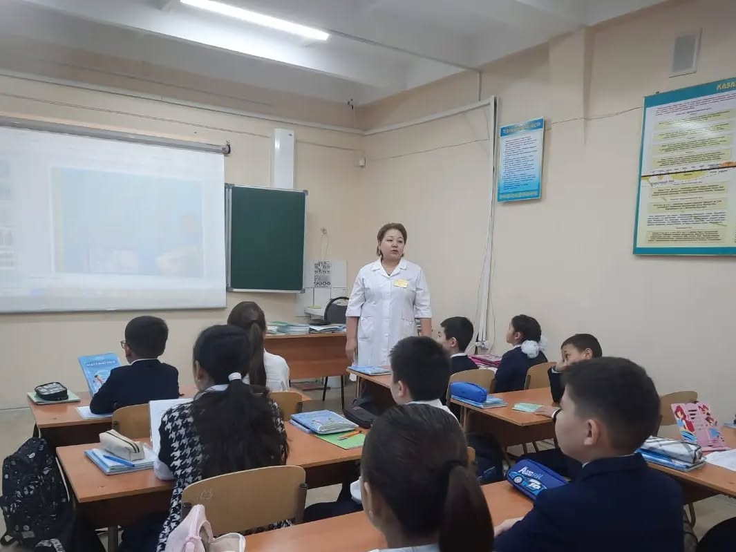 15 ноябрь 2024 0 1 2 3 4 5 «Дұрыс тамақтану. Дәрумендердің пайдасы» 15.11.2024 ж. күні № 141 жалпы білім беретін мектептің 1-4 сынып оқушыларымен мектеп медбикесі Г. Мунаждинова және директордың оқу ісі жөніндегі орынбасары А. Майлыбаева «Дұрыс тамақтану. Дәрумендердің пайдасы» тақырыбында әңгіме- сұхбат жүргізді. Осы беттің QR-коды:QR-код этой страницы: