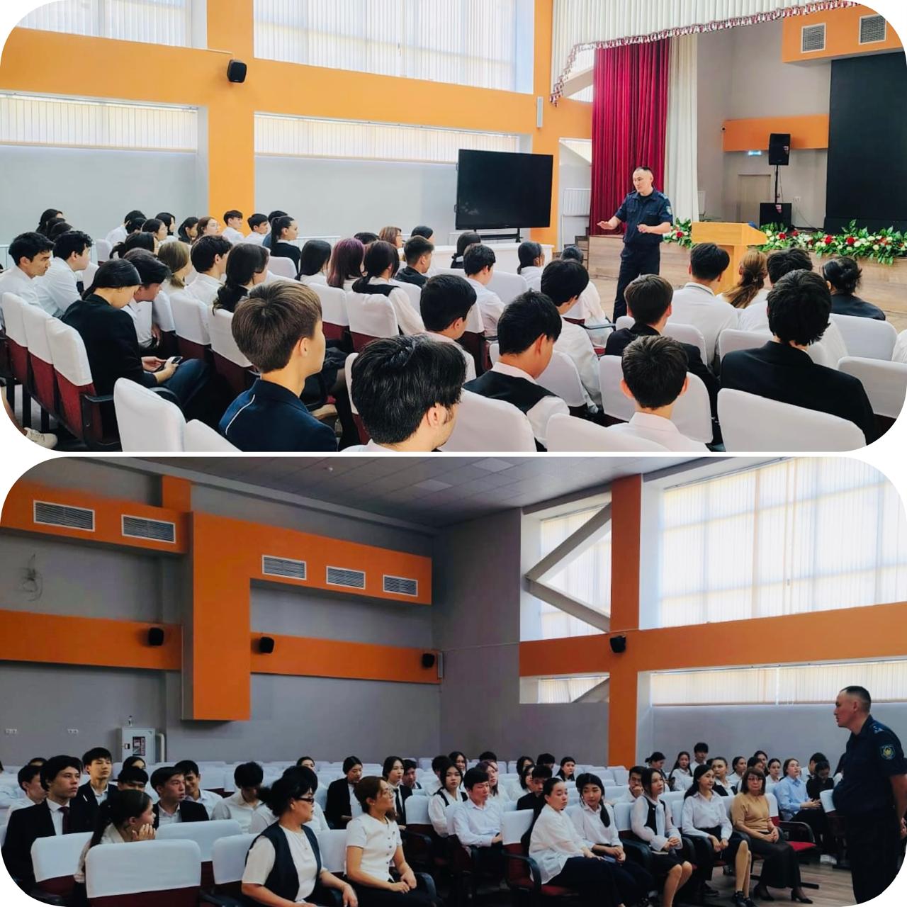 Алматы қаласы, Әуезов ауданы №141 жалпы білім беретін мектепте мектептің учаскелік полиция инспекторы полиция капитаны Азимбаев Ш.Э. және мектеп әкімшілігі, мұғалімдердің қатысуымен жиналыс өткізілді. Азимбаев Ш.Э. “Соңғы қоңырау” салтанатты жиынында мектеп бітіруші түлектерге аниматорлар, әртістер, агенттіктер, студияларды шақыруға болмайтындығы және мейрамханаларға, ойын-сауық орталықтарына, саябақтарға баруға, автокөлік шерулерін ұйымдастыруға, коттедж жалдауға болмайтындығы туралы толық мәліметтер берді.