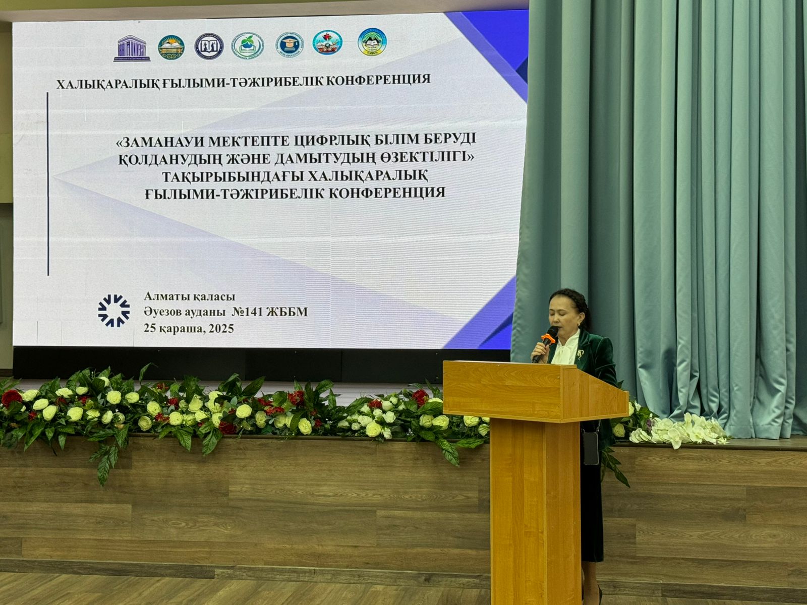 Бүгін 25.11.2025 ж, Алматы қаласы, Әуезов ауданындағы №141 жалпы білім беретін мектепте «ЗАМАНАУИ МЕКТЕПТЕ ЦИФРЛЫҚ БІЛІМ БЕРУДІ ҚОЛДАНУДЫҢ ЖӘНЕ ДАМЫТУДЫҢ ӨЗЕКТІЛІГІ» тақырыбындағы халықаралық ғылыми-тәжірибелік конференция өтті.