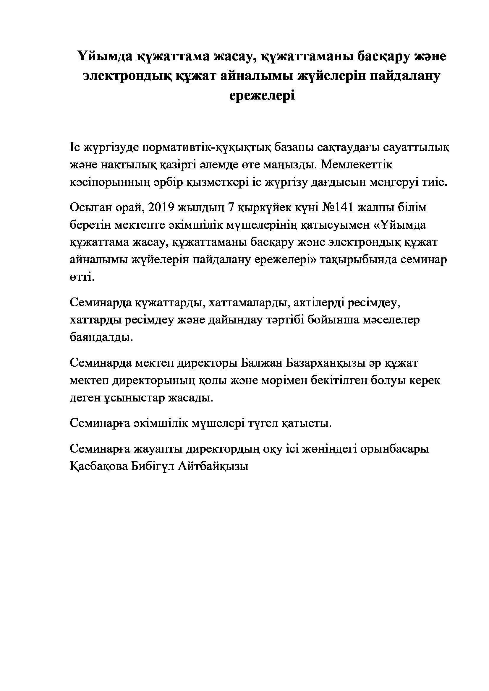 07 сентябрь 2019 0 1 2 3 4 5 Ұйымда құжаттама жасау, құжаттаманы басқару және электрондық құжат айналымы жүйелерін пайдалану ережелері Осы беттің QR-коды:QR-код этой страницы: