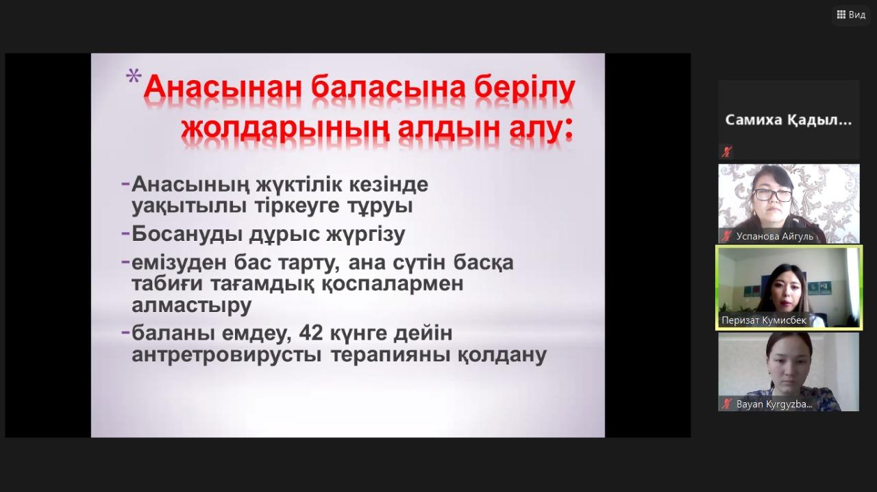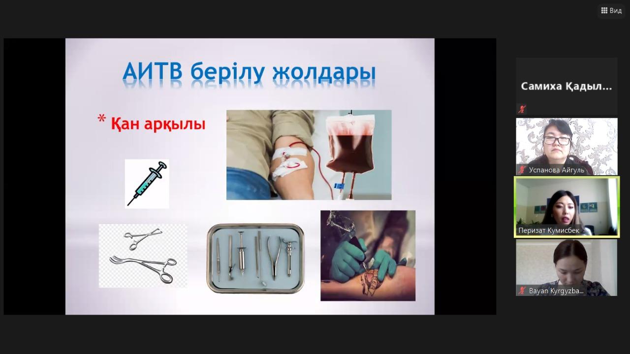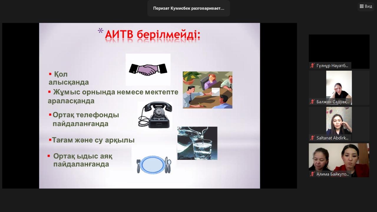 №141 жалпы білім беретін мектепте 15.04.2021 ж күні сағат 15.00-де zoom платформаcы арқылы Алматы қалалық ЖИТС орталығы мұғалімдерге «АИТВ инфекциясының мәселелері және оның алдын алу» тақырыбында семинар-тренинг өткізді. Семинарға 27 мұғалім қатысты.