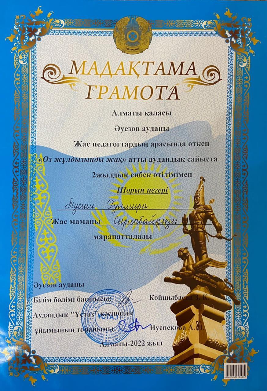 06 апрель 2022 0 1 2 3 4 5 Құттықтаймыз Алматы қаласы Әуезов ауданы жас педагогтардың арасында өткен "Өз жұлдызыңды жақ" атты аудандық сайыста 2 жылдық еңбек өтілімен ІІІ орын иегері №141 жалпы білім беретін мектептің бастауыш сынып мұғалімі Туеши Гульмира марапатталды. Құттықтаймыз 💐 Осы беттің QR-коды:QR-код этой страницы: