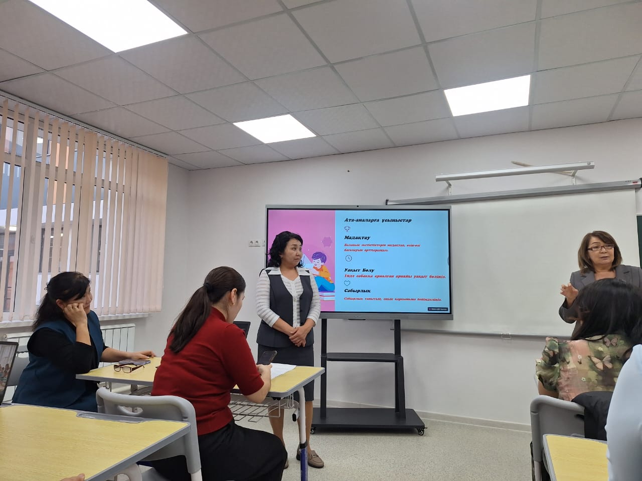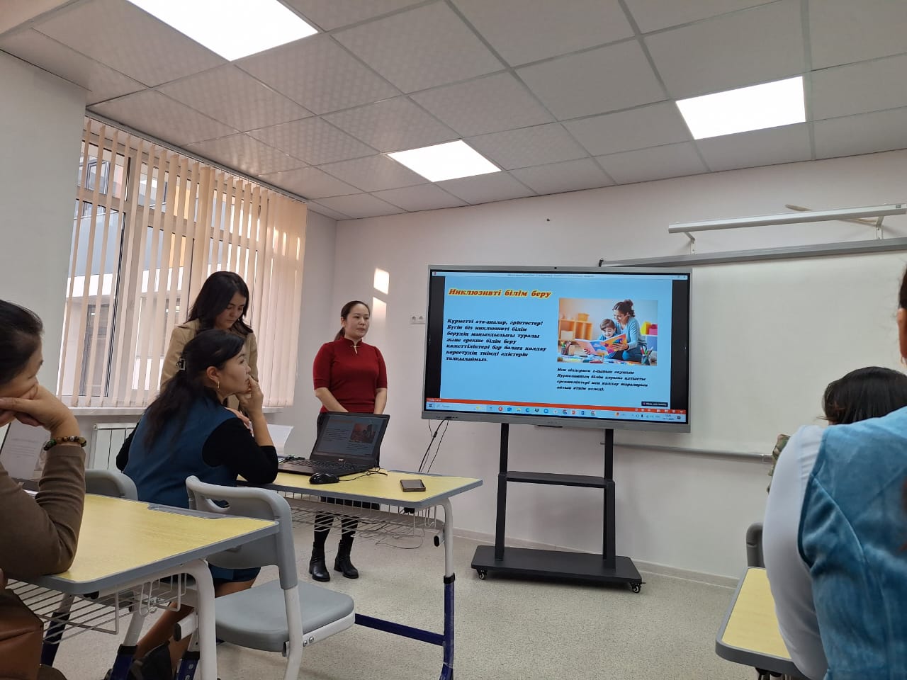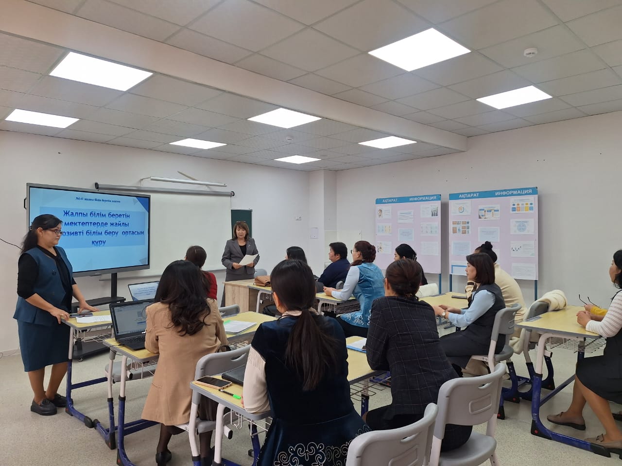 «Жалпы білім беретін мектептерде жайлы инклюзивті білім беру ортасын құру» туралы баяндама оқылды. "Білім алудағы ерекше қажеттілігі бар оқушылармен жүргізілетін жұмыстың түрлері" атты психологтың жұмысы тыңдалды, сонымен қатар оқушылармен тікелей жұмыс жүргізіп отырған пән мұғалімдері мен сынып жетекшілерінің мәлімдемелері тыңдалды. Ата-аналар балалары туралы нақты мәліметтер алып, балаға білім мен тәрбие беруде неге басты назар алу керек екендігі жөнінде көптеген нұсқаулықтар алды. Қорытындысында мектеп директоры Умбетова Б.Б. сөз алып, мектептегі жауапты тұлғалар, мамандар мен ата-аналар бірлесе жұмыс жасап отырса, бұл оқушылар қалыпты оқушылардың қатарына қосылып кетуі әбден мүмкін екенін атап айтты.