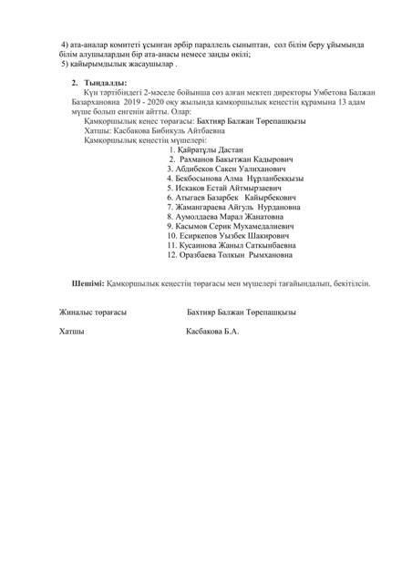 » Қамқоршылық кеңес хаттамасы