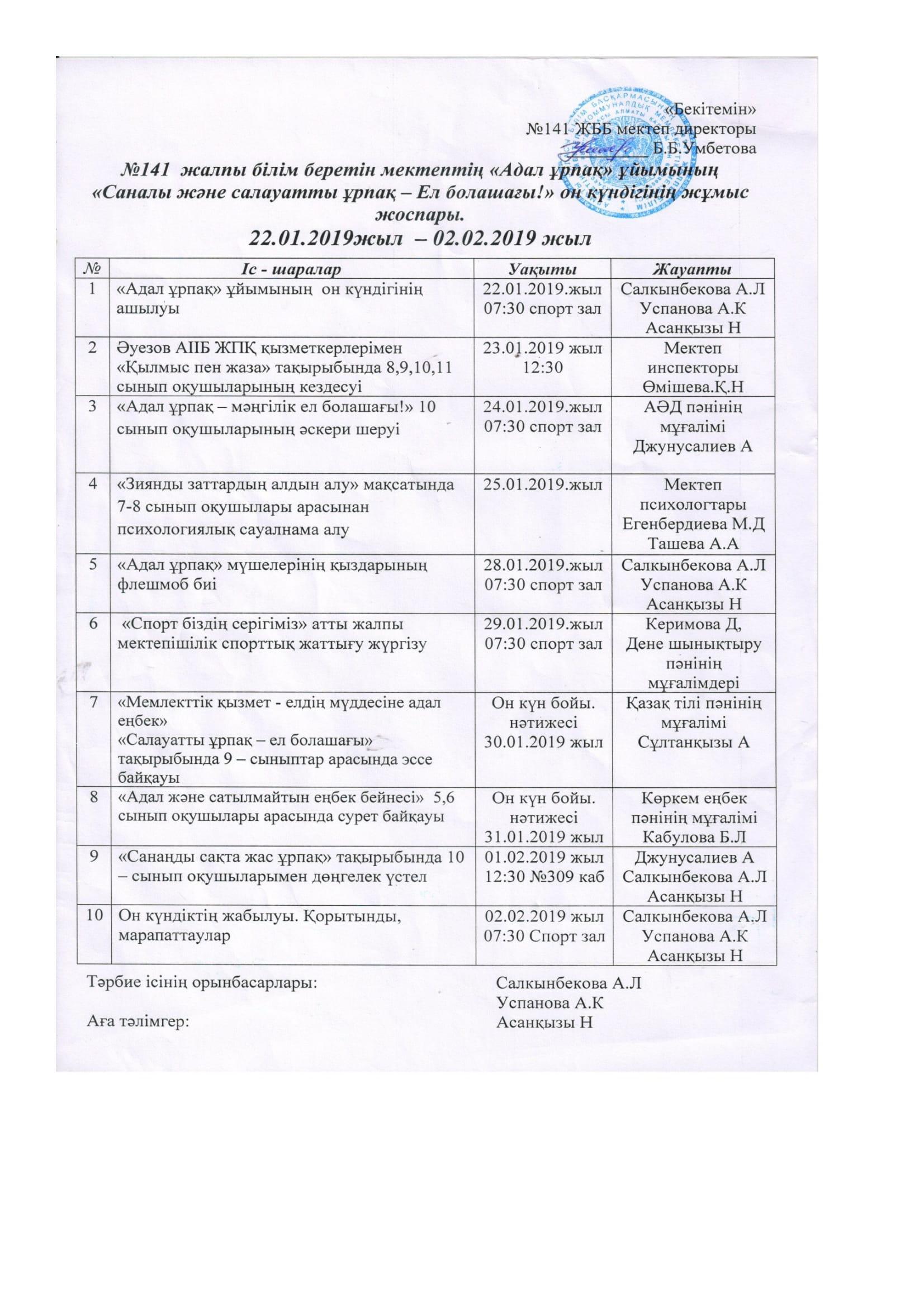 22 январь 2019 0 1 2 3 4 5 Адал ұрпақ ұйымының онкүндігінің ашылуы Осы беттің QR-коды:QR-код этой страницы: