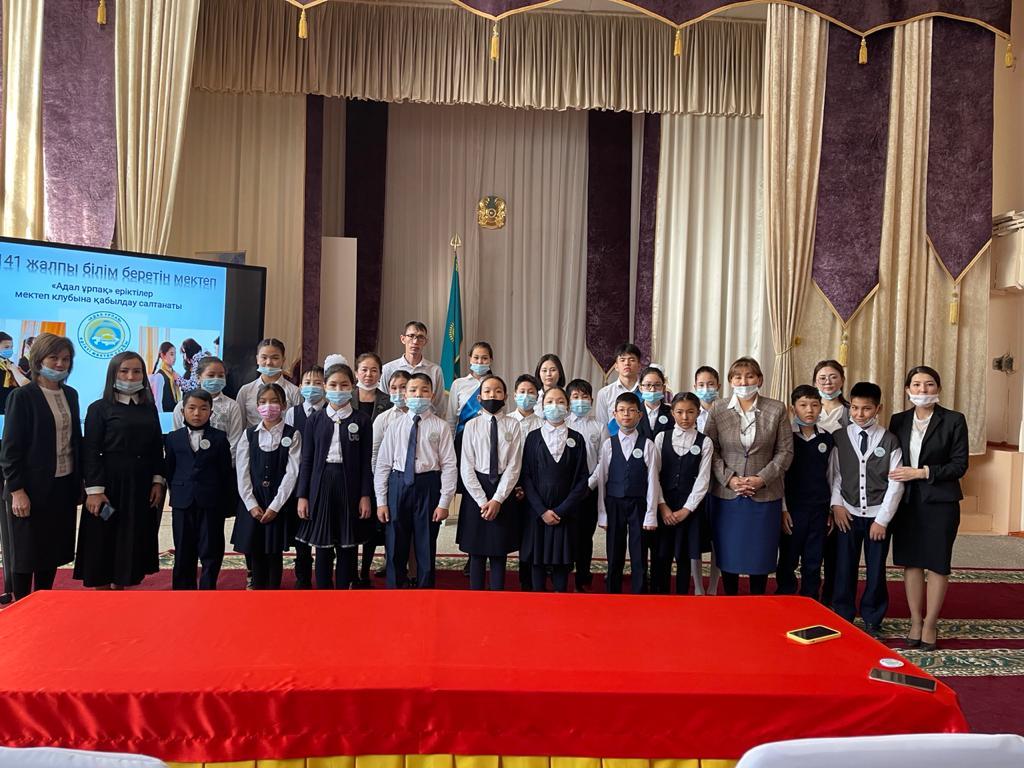 № 141 жалпы білім беретін мектепте 30.11.2021 жылы күні мектептің 5 сынып оқушыларын «Адал ұрпақ» еріктілер клубына қабылдау салтанаты өтті. "Адал ұрпақ" ерікті мектеп клубының негізгі міндеттері мектепте сыбайлас жемқорлыққа қарсы мәдениетті қалыптастыру, сыбайлас жемқорлыққа қарсы көзқарасты нығайту бойынша бастамаларды көтермелеу, сыбайлас жемқорлыққа қарсы сипаттағы іс-шараларды ұйымдастыру болып табылады.