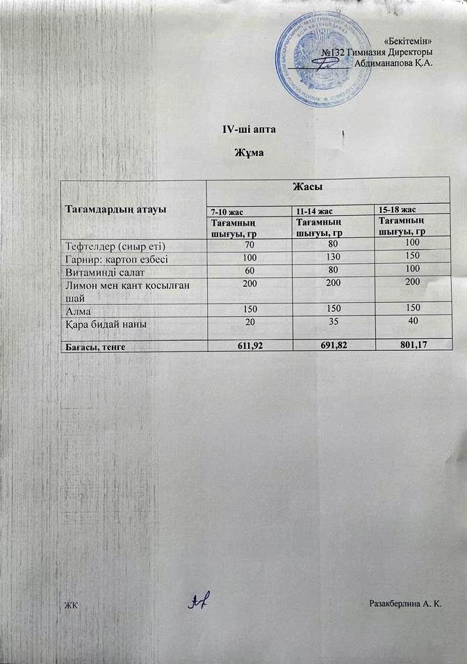 ІІІ-апта, Жұма күнгі ас мәзірі