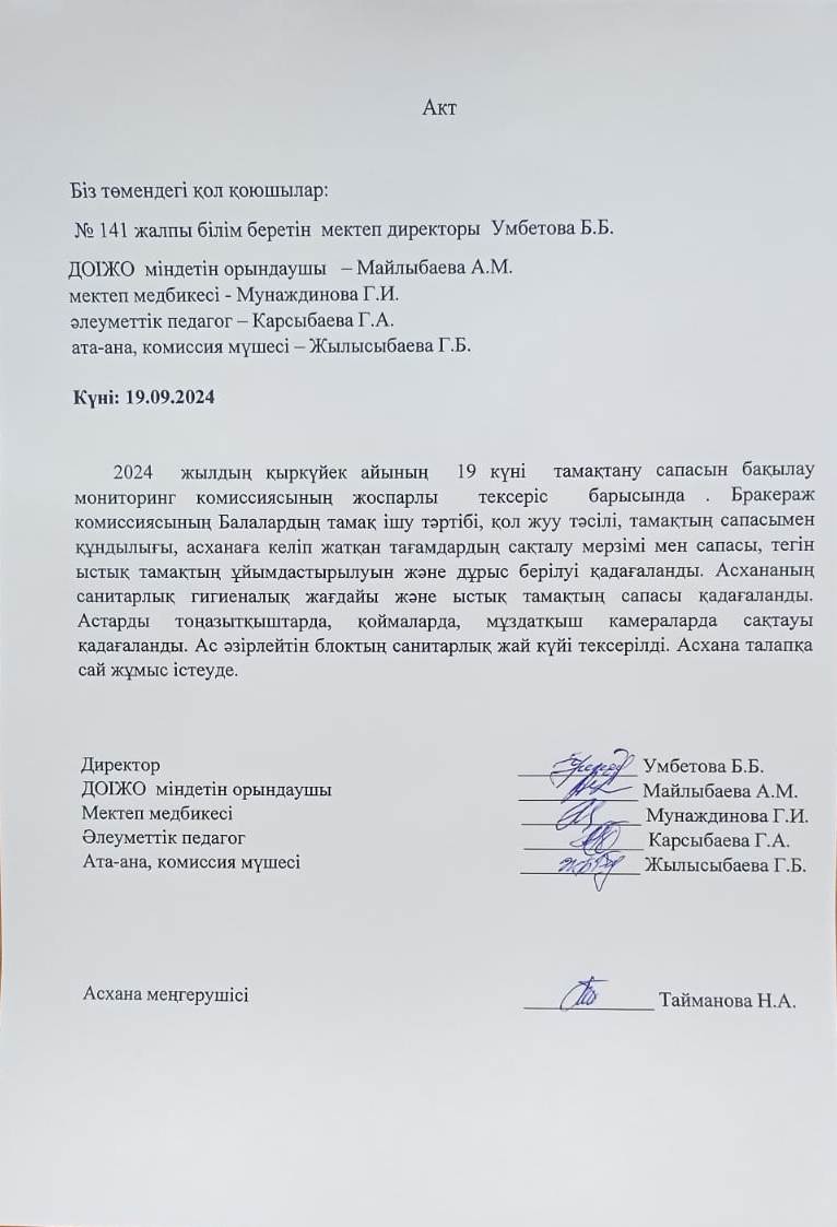 19 сентябрь 2024 0 1 2 3 4 5 Акт тамақтандыру сапасын бақылау жөніндегі мониторинг Осы беттің QR-коды:QR-код этой страницы:
