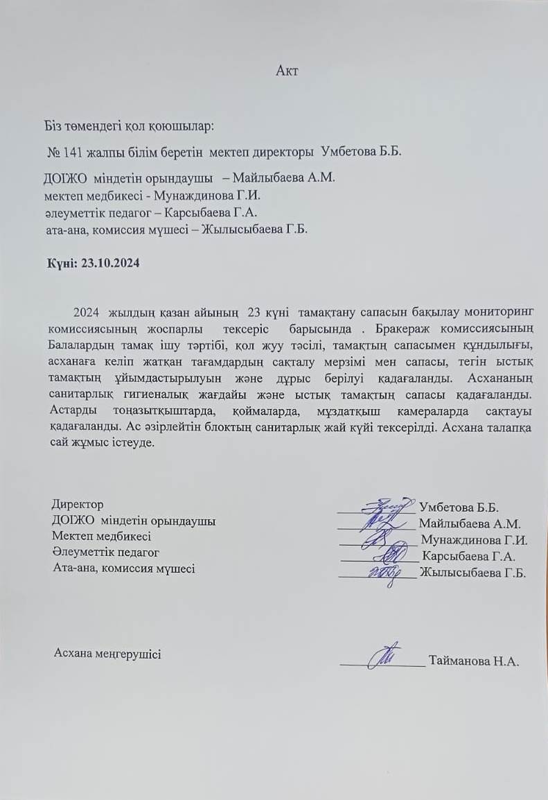 23 октябрь 2024 0 1 2 3 4 5 Акт тамақтандыру сапасын бақылау жөніндегі мониторинг Осы беттің QR-коды:QR-код этой страницы:
