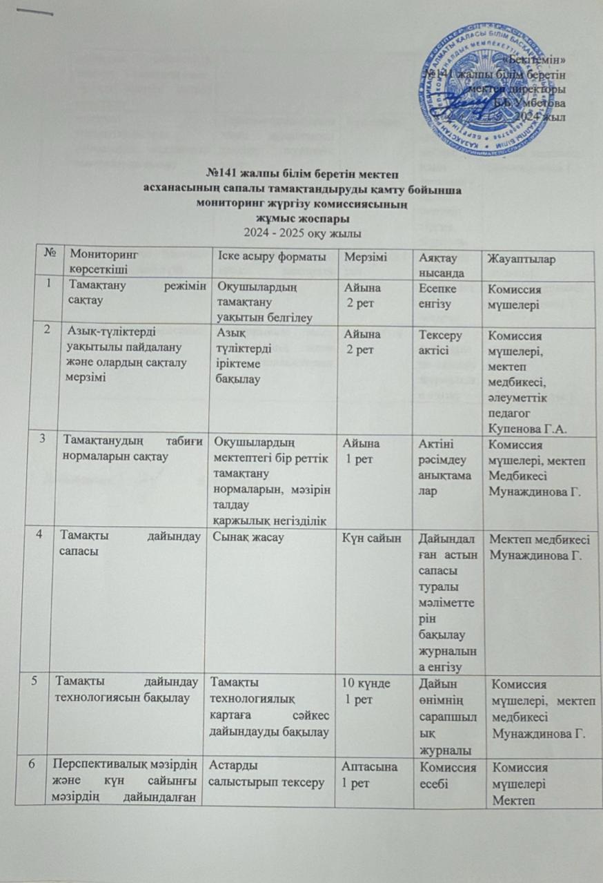02 сентябрь 2024 0 1 2 3 4 5 Асхананы сапалы тамақтандыруды қамту бойынша мониторинг жүргізу комиссиясынығ жұмыс жоспары Осы беттің QR-коды:QR-код этой страницы: