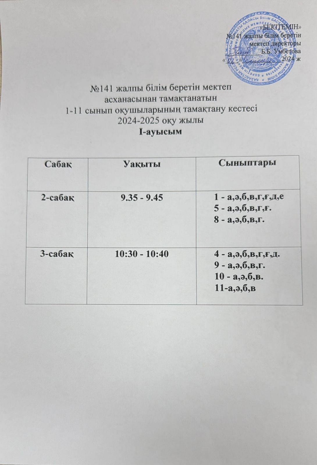 02 сентябрь 2024 0 1 2 3 4 5 Асхананың тамақтанатын 1-11 сынып оқушыларының тамақтану кестесі І, ІІ - ауысым Осы беттің QR-коды:QR-код этой страницы:
